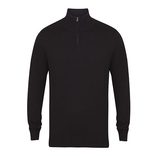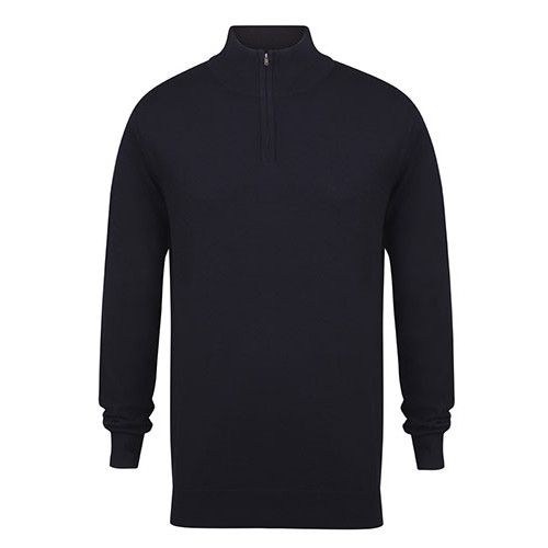 H729 - Henbury Zip Neck Jumper - 4 Colour Options - Fine Knit - Metal Zip and Pull - Semi Fashioned Sleeve & Neck Detail - Ribbed Collar, Cuff and Hem - Machine Washable - 50% Cotton/50% Acrylic